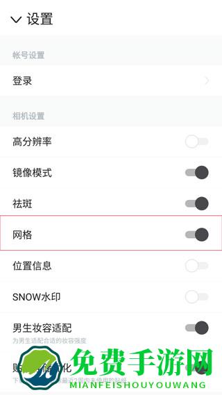 4、然后我们再点击“设置”选项,在里面找到“网格”,点击开启后面的按钮。