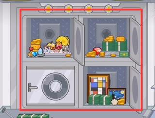 来到银行二楼,打开保险柜,根据图形找到钻石,红心,星星以及贝壳并依次放入,保险柜就会打开,里边有很多宝物。