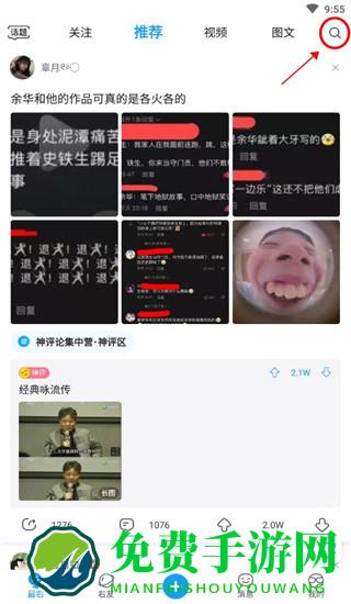2、进入推荐页面后,点击右上方的搜索图标,进入搜索页面;