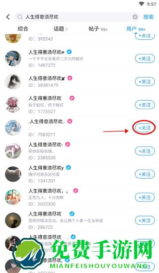 4、在搜索结果页面找到要添加的对象,点击“+关注”按钮即可;