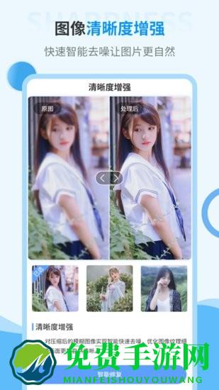 图像清晰度增强:对压缩后的模糊图像实现智能快速去噪,优化图像纹理细节,让画面更自然清晰。