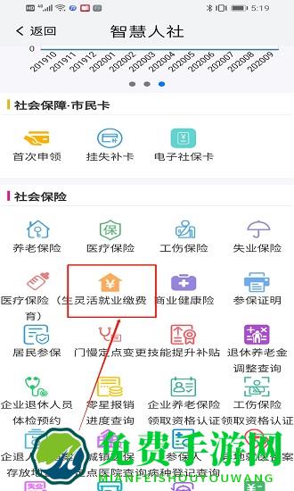 2.然后点击“灵活就业缴费”,然后点击进入下一步;