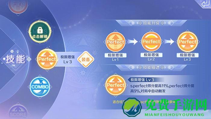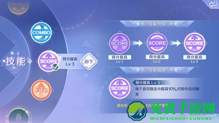 提升S.PERFECT音符节奏和PERFECT音符节奏的得分加成,比较适合节奏感好的玩家使用,尽量多的按出完美音符节奏,可以帮助我们获得更高的得分。这个技能对玩家的操作要求更高一些,对于技能流的玩家来说,这个技能更加实用。