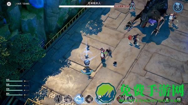 4、例如在一场boss战中,boss会交替施放多种技能来攻击玩家,有扇形技能,有召唤小喽啰的技能,有时还会暂时脱离战斗,在场边释放范围技能来攻击玩家的小队,而根据角色定位不同,也有在boss面前抵挡伤害,拉住仇恨,还有在侧面输出的近战输出,以及在后方的辅助和远程输出,总共可以带到四名角色上阵。