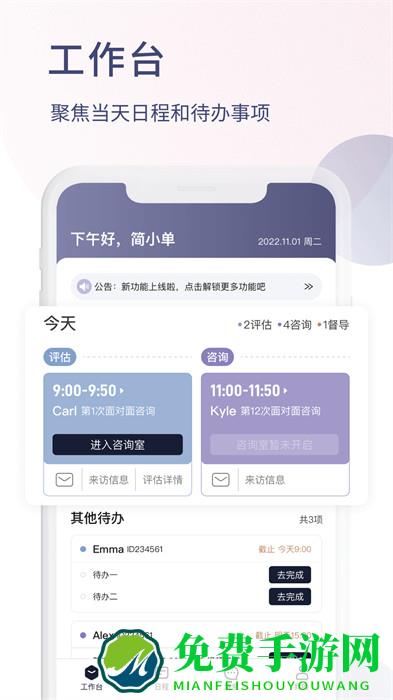 简单心理咨询师版app是简单心理平台咨询师的执业操作和专业成长的平台。来自全球117个城市近1000名专业华语心理咨询师在这里共同执业,我们敬畏专业、坚守伦理,共同提供了60+万人次有温度、有边界的心理帮助。还为用户提供了执业咨询师互助社区,以便能相互帮助,提升职业能力,为有需求的用户提供更专业的服务。