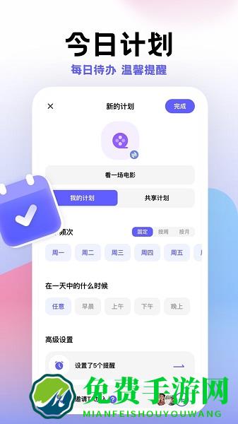 一款小而美的计划打卡app。全免费无广告的待办清单监督自律神器。帮助你改掉拖延症、提高执行力、养成好习惯,达成生活中各种“小计划”。帮你做计划,每天做什么一目了然。还可以为关心的好友创建计划,也可以和好友一起抱团打卡、相互监督、共同进步。