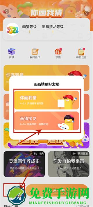3、点击左下角的“好友桌”,选择你画我猜或画猜接龙。