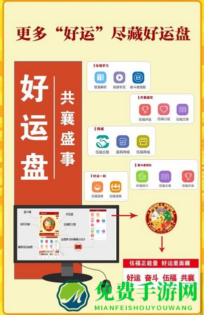 伍福好运盘是由伍福网推出的一款集合文化、智慧与信仰的祈福工具。它蕴含了伍福文化(长寿、富贵、康宁、好德、善终)与九太极智慧修炼体系——太极三十六智,不仅是好运的标志,还能帮助你在迷途困惑中指引方向,解决信仰寄托,引领我们福慧双修。每天祈福,丰富时间碎片,丰富人生信仰,践行伍福,积蓄暗能量,实现伍福梦。自2013年11月伍福好运盘上线以来,受到了百万网友的广泛关注与热情支持,积累忠实用户数十万之多,每日在好运盘为家人、为自己祈福祝愿。