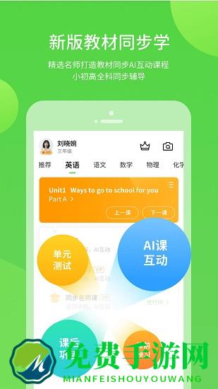 1. 课内同步学:精选名师打造课内同步AI互动课程,小初高全科同步辅导