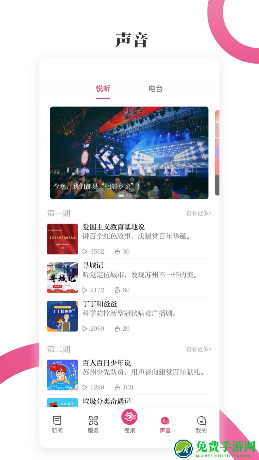 看苏州新闻客户端是由苏州市广播电视总台官方推出的一款节目视听互动软件,看苏州电视台直播app也是用它。用户可以通过手机应用了解苏州的百态,还能随时随地在线观看和收听节目直播,通过摇一摇参与节目互动,赢取节目大礼,好用好玩,欢迎需要的朋友来免费手游网下载体验吧!