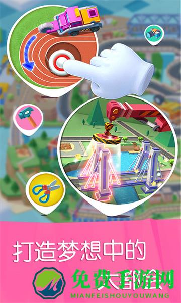 城市建设任务多,操作挖掘机、起重机、割草机等13款工程车,铺管道、搭钢筋、砌围墙、刷油漆......创建6大主题建筑,体育馆、商业区、居民区、公园、铁路、桥梁。(认识工程车,锻炼儿童手眼协调能力)