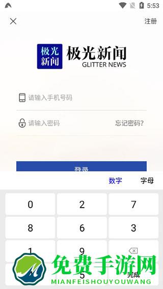 1、在免费手游下载打开极光新闻app官方手机版,输入手机号、密码进行登录,没有帐号的用户点击右上角的注册进行帐号申请;