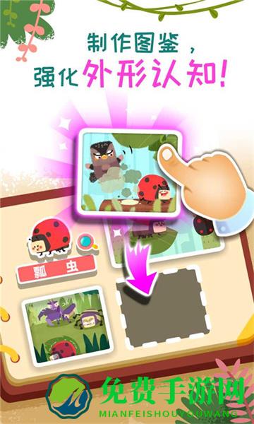 宝宝认知昆虫外形!成功找到昆虫,获得贴纸。宝宝根据昆虫外形,动手又动脑,完成拼图。拼图里面还有惊喜等宝宝发现哦!