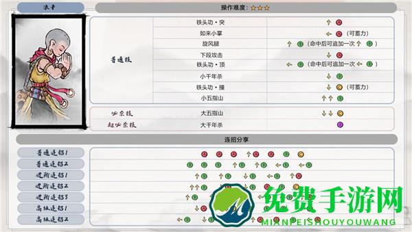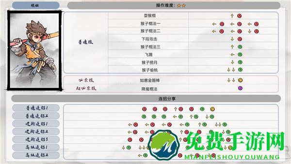 2、顽猴基础连招,操作难度二星:↓B↓↓C接BBB接↓↓R超必杀技降魔棍法再接↓↓C。