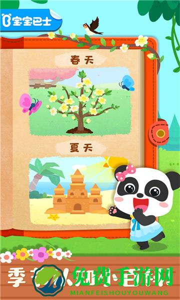 宝宝学四季手游是一款超级好玩又益智的儿童手机游戏,同时它也是宝宝巴士公司所创作的一款最新作品,目的就是为了让孩子们了解四季的变化和学习四季中所该从事的事业等,游戏中也包含了一些亲子互动游戏,能让父母们和孩子一起学习成长哦,感兴趣的家长朋友们就快来下载体验吧!