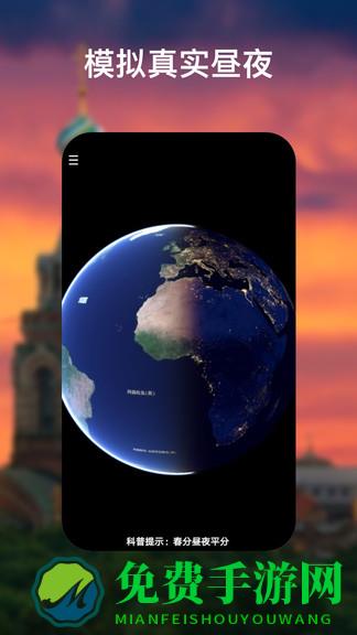 昼夜模型可展示三维的新知卫星地球的晨昏线动态效果;