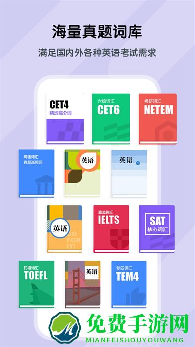 2、全面丰富词库内容四六级雅思考研托福等;