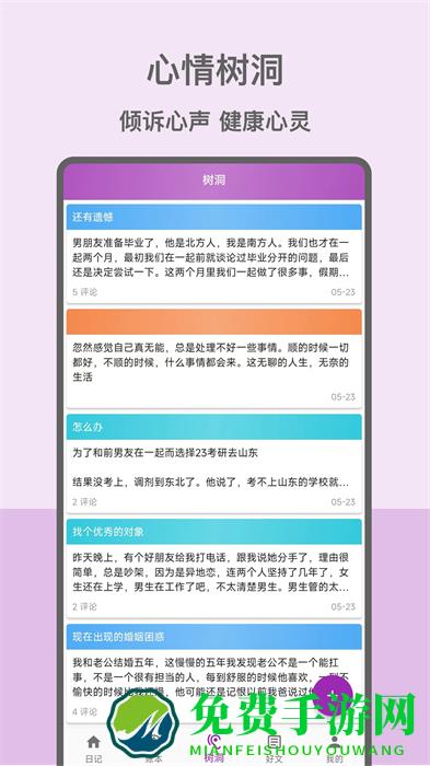 心情日记本是一款十分小巧的笔记本app,界面设计美观大方,没有什么繁琐复杂的功能,打开就能马上用了,而且有很多不一样的字体可供选择,用户根据自己心情选择合适字体,还能选择信纸,不同信纸代表着不同的风格,是一款小巧使用的笔记本应用程序,喜欢就来免费手游网下载吧!