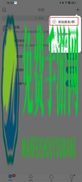 2、接着会出现一个小弹窗,点击添加朋友/群;