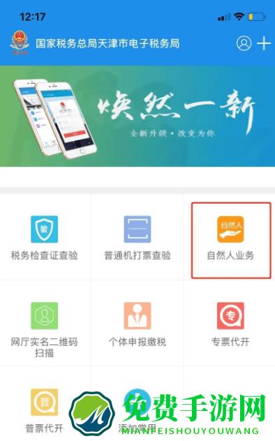 1、打开“天津税务”手机APP,选择“办税-自然人业务”,按提示完成注册。