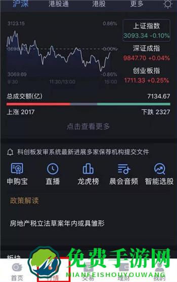 点击手机屏幕下方“交易”菜单,输入资金账号和密码即可登录