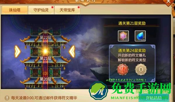 诛仙塔是《青云诀》单人副本中的一种特色玩法,类似于其他游戏中的爬塔玩法,通关指定层数可以解锁新符文类型和符文孔位,每天0:00系统会根据你的通关层数通过邮件发放一定数量的符文精华(用于提升符文等级)。