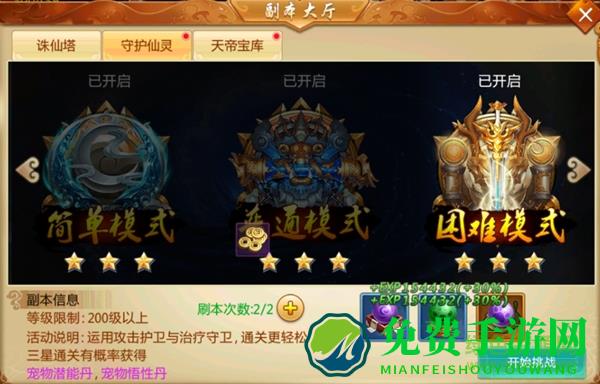 守护仙灵是单人副本中的一种玩法,主要产出宠物经验丹、宠物进阶丹,如果3星通关的话还有可能产出宠物潜能丹和宠物悟性丹,一共有三种难度,当然,难度越高奖励也会越丰富,接下来就为大家介绍一下守护仙灵这个副本。