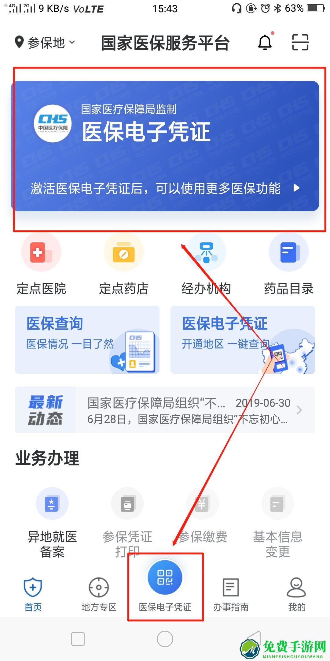 1.进入APP后点击页面中的“医保电子凭证”;