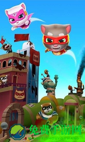 体现汤姆猫家族变身超级英雄,通过跑酷与邪恶的浣熊势力对抗和重建城市的主题