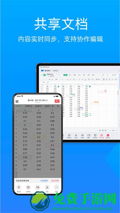 会议内支持共享播放文档,参会人自动和演示者同步。参会人可以向文档所有者申请编辑权限,获得权限后,参会人可以协作编辑文档,提高沟通效率。