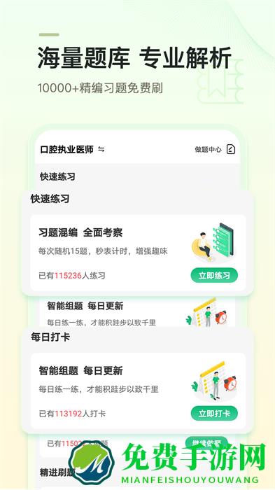 章节练习、知识点练习、网校模拟题、历年真题等均可通过手机实战演练,题型全面、极其精准,贴近考试,准确掌握做题技巧及命题规律,医师资格、执药医师、护士资格、检验师全部包含哦。