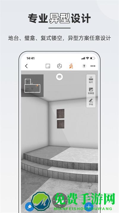 家居行业科技新秀,移动端设计系统——量房到初步方案设计工具。能简单、快速、准确量房出图,户型图一键3d和720°漫游,可以导出cad平面布置图、cad立面布置图、天花布置图、彩平图、手绘布局图十几个文件图纸,实现快速协同办公,并能将设计作品一键转视频,分享裂变刷爆朋友圈,是室内设计师的必备工具,ares操控选择系统,拥有三层结构设计模式、无障碍选择体系、高精度准确化操控体系、智能添加体系。绘制方式更加自由、操作方式突破手机尺寸限制,带来高准确度的细腻操控体验。