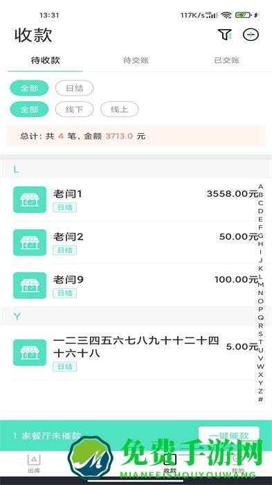 4、入款管理,各种入款数据可以随时进行在线管理,实时进行对账。
