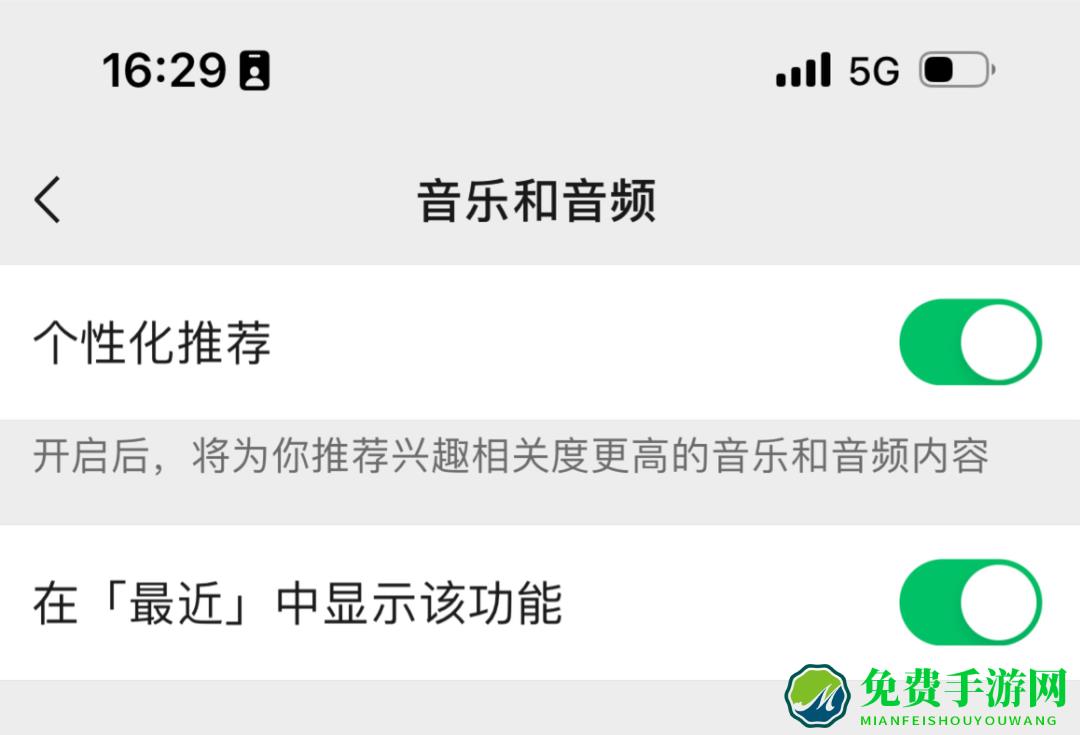 同时,音乐与音频的“个性化推荐功能”、“在最近中显示该功能”可以支持关闭,可以按这个步骤进行操作:我的--设置--通用--音乐和音频,点击即可进行关闭。