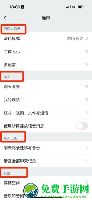 设置--通用页面,新增了分类,如「界面与显示」、「聊天」、「聊天记录」、「其他」,进行设置时可以更方便高效。