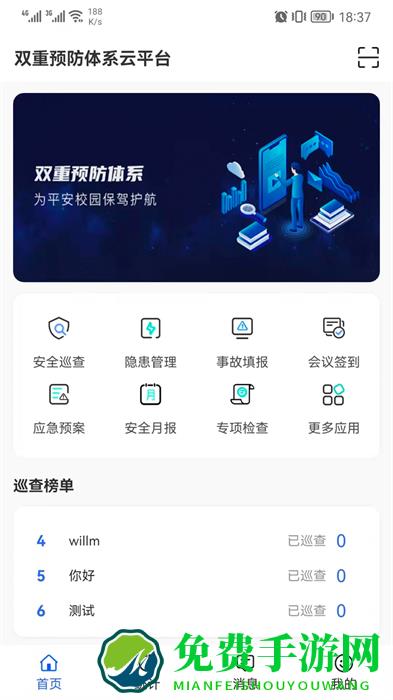 双安企业版专门为校园打造的安全管理平台,在这里用户可以时刻巡检校园,在线记录各种安全隐患,保障在校师生们的安全,同时还可以在这里进行卫生检查等,遇到事故也可以及时上报给部门。每日的代办事项也都会显示在首页上,欢迎有需要的朋友下载使用!