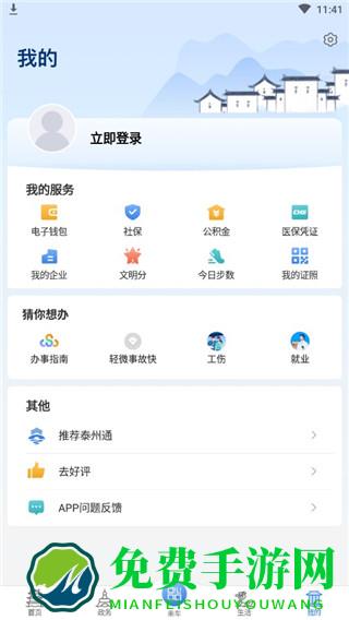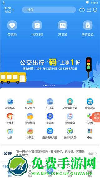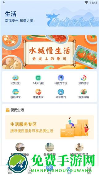 1、在免费手游下载并安装泰州通app最新版本,进入首页可以查看各项功能