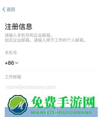2、输入手机号以及工作邮箱进行注册,输入相应信息,点击下一步;