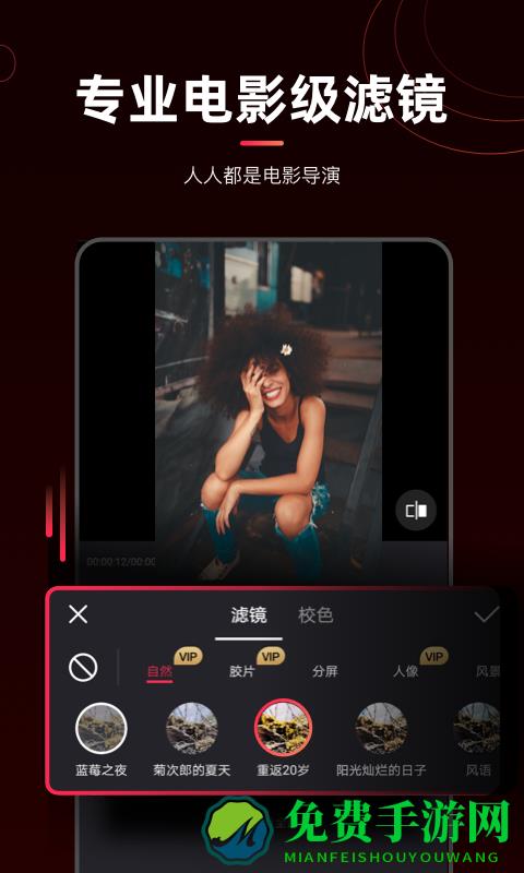 多样滤镜:自然,胶片,人像多种滤镜,每个视频都能美美哒~