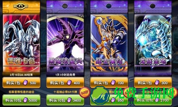使用宝石购买卡包可以更为精准地收集心仪的卡组。无论是蕾雅卡包,还是战士集结,都能够快速获得该类卡牌,使得该卡组的战力成型。而龙族圣地卡包中包含了大量的龙族怪兽和地属性怪兽,更有超稀有UR卡“青眼白龙”登场,绝对值得偏爱这一卡组的玩家尝试。