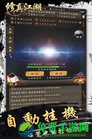 这游戏能让你体验不一样的人生。你能体味从一个默默无名的道界奴仆,逐渐成长为一派宗师。你进而撼动整个修真界的历程。而这一切不需要肝,只要花一点点时间挂机即可完成。