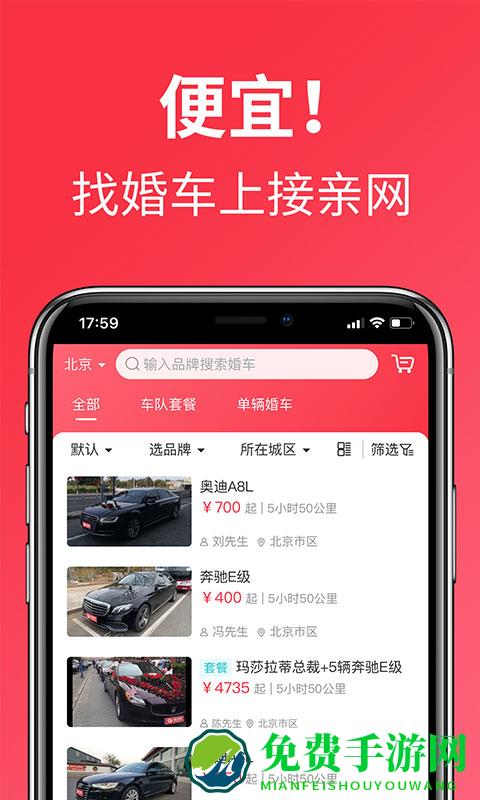 接亲网婚车app,一款专为结婚汽车租赁而生的婚车出租平台,用户可以在这里随时发布婚车需求,超多车主为你提供车源,省去中间差价,为你节省更多资金,专业婚车平台为你提供服务保障,需要的用户就快来下载吧!