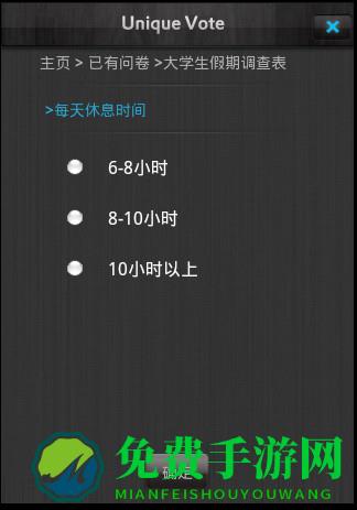 问卷星,是一个专业的在线问卷调查、测评、投票平台,专注于为用户提供功能强大、人性化的在线设计问卷、采集数据、自定义报表、调查结果分析系列服务。与传统调查方式和其它调查网站或调查系统相比,问卷星具有快捷、易用、低成本的明显优势,而且用户可以轻松创建在线填写的网络问卷,然后通过QQ、微博、邮件等方式将问卷链接发给好友填写,问卷星会自动对结果进行统计分析,您可以随时查看或下载问卷结果。已经被大量企业和个人广泛使用。快来免费手游网下载吧。