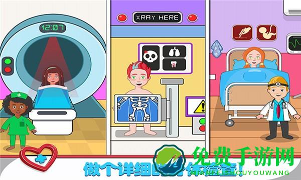 在镇上的城市医院玩得开心,互动和扮演不同角色。