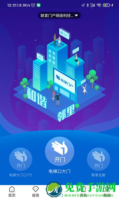 联掌门户是一款专门为住户日常生活使用的手机端APP。联掌门户通过实现视频请求和通话,接收来自梯口机的访客开门请求,住户 收到消息后能够通过APP直接远程开门。同时,该款APP还为住户提供广告、物业公告等功能,方便和丰富住户生活。