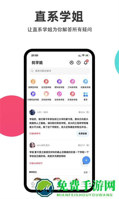 保研通app是一款手机保研学习软件。软件中含有大量与保研相关的信息资讯,用户可以在这里获取到大量自己对于保研所需要的信息,用户也可以在这里与学姐和学长们进行保研经验方面的交流,从而让自己在保研方面能够有更多的把握和信心,非常适合准备考研的用户们,有需要的朋友们快来下载吧!