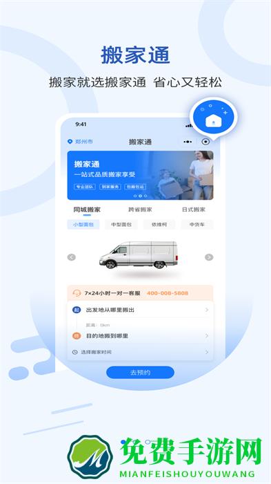 搬家通手机版是一款贴心便捷的搬家服务应用,不管是搬家还是整理家居,我们都能在这里找到全方位的帮助,在这里还支持用户在线预约搬家公司,无需费力跑腿,即可找到专业搬家服务,此外,还拥有专业的搬家建议和家居物品分类整理指导,有助于你高效规划搬家过程,确保搬家不再烦心,此外它的界面简洁明了,使用简单,为使用者提供了极大的便利,不仅如此,还可轻松应对新房入住、旧居整理等各种场景,省时省力。