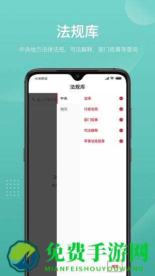 法律法规查询相关功能,可以检索国家及地方各级的行政法规、司法解释等;