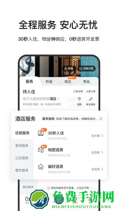 一站式行程助手我们将根据您的行程,为您提供酒店、机票、火车票一站式行程助手,选房、续住、一键开票、光速入住、零秒退房以及航班动态等全自助服务。