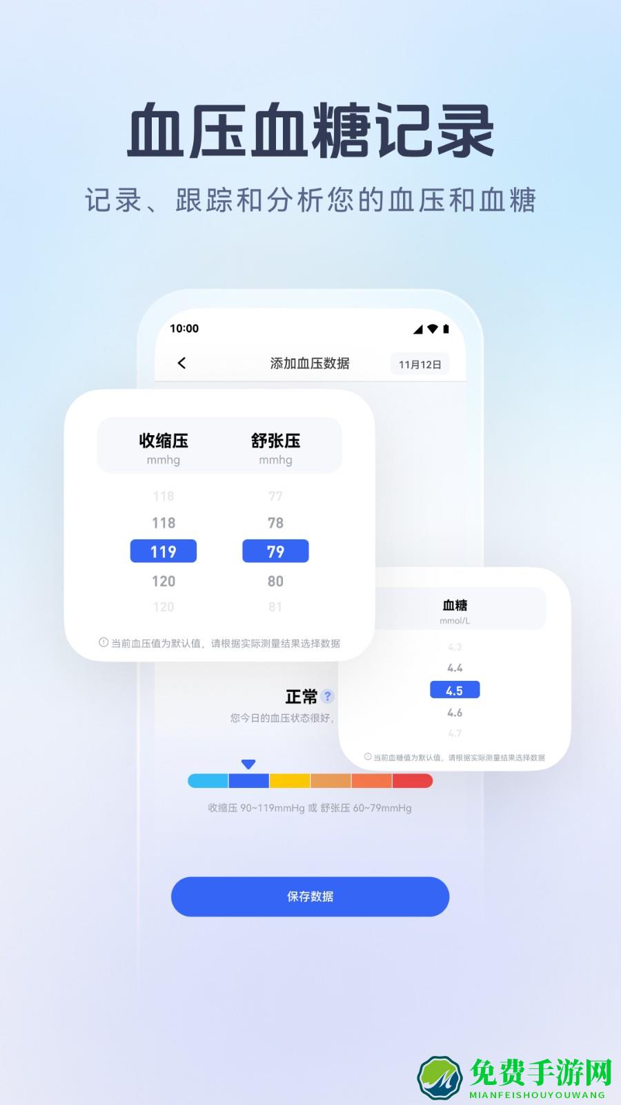 血压血糖宝手机版是一款针对血压健康数据监测和管理平台,它拥有全方位的功能,方便你记录、管理和监测血压和血糖数据,无论是关注自身健康状况,还是需要监测血压和血糖的糖尿病患者,都能在这里实现,同时还准备了实时的血压和血糖测量结果,并支持记录和保存多次测量数据,有助于你更好的了解任何时间段的血压和血糖状况,及时发现异常情况,此外,还准备了数据统计和趋势分析功能,可通过图表和统计数据,使我们更清晰地了解自己的健康状况,并根据数据变化进行合理的调整和管理。